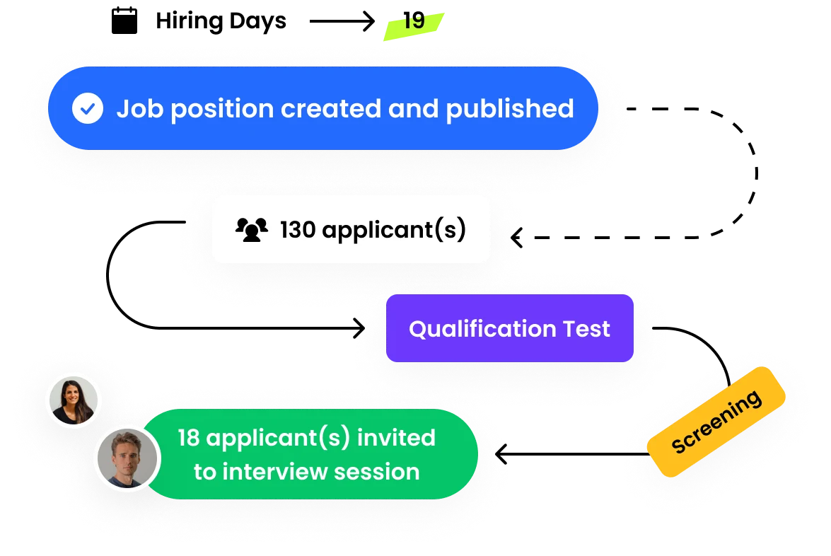 Create application process faster with pre-screening tasks and assignments. This way, you can identify commited applicants.